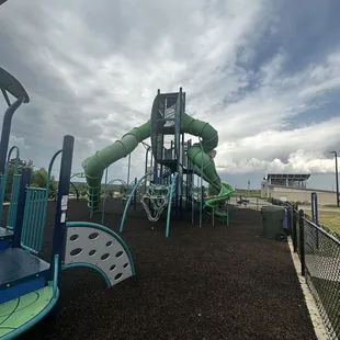 Great new playground in addition to all Riverwalk neighborhood has to offer. This is great for kids of all ages. Slides, seesaw, swings, musical equipment, etc. love that it's fenced in. Nice parking lot with plenty of spaces too.