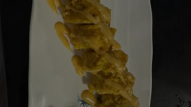 Salmon belly, super white tuna topped with jalapeños, masago, avocado and finish off with yuzu sauce.