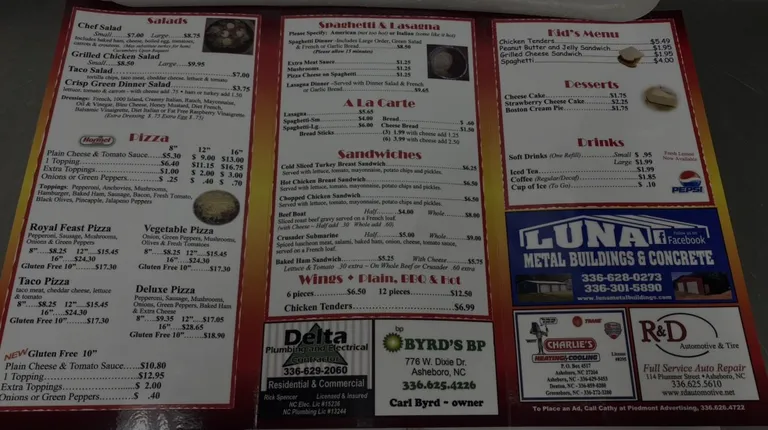 A staple to Randolph county. Great chef salad and unique pizza; sandwiches are good too. Always good staff.