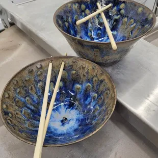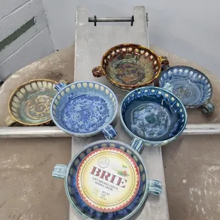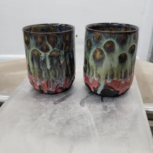 The great uniquely handmade coffee mugs we picked up.