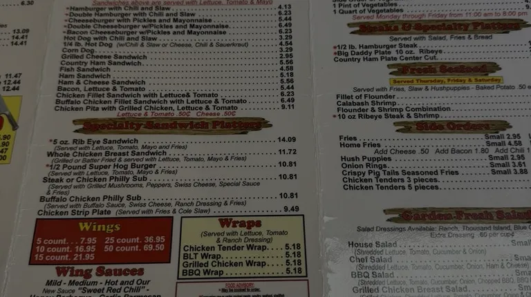 They have Southern breakfast options and various lunch items. We got BBQ salad, hamburger, chicken pita, fries.. All good. You can sit inside and get wait service or take out. Friendly staff and local favorite. Tyro is small enclave in Davidson County. They have tables and booth seating. Clean. No obvious Signature dishes, but consistent quality.