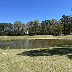 This review is for the 18 hole course.I got on around 930a on a Thursday.It was quite busy and I had a slow solo walking in front of me.I had a fast solo riding behind me so it was not my preferred pace.The course plays well overall.The fairways are wide open, the greens and tee boxes are in decent shape for the most part.Some of the white tee boxes were in bad repair with very little grass.The green sizes are standard, not very large but they are all in pretty good shape for the most part.Number 15, a par 3 over the water with a bunker close in on the left side of the holes is a real challenge, especially with the wind in your face.There are 3 holes where you are hitting blind shots off the Tee which is always a challenge when you're playing a course for the first time.Overall this is a decent course and @ $25 with cart for Senior isn't bad.The carts are old, slow and in need of repair.