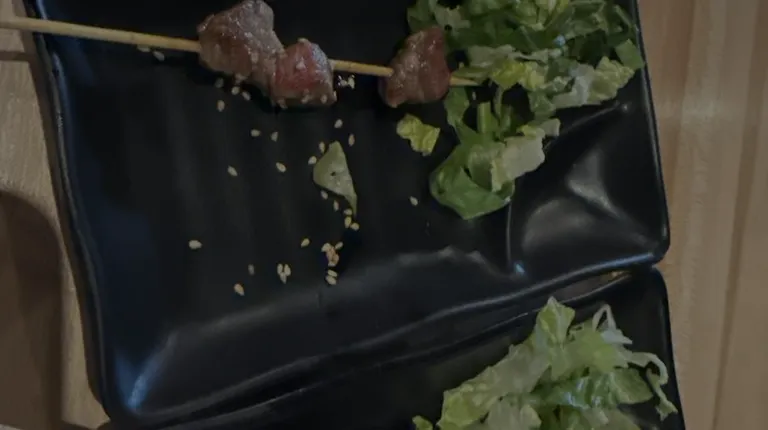 Undercooked slimy runt steak skewer