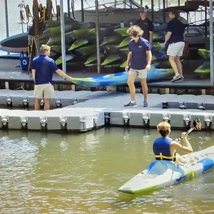 Rented a double kayak and paddleboard online while eating lunch at the nearby bar&grill. Easy checkout and waiver process. Pickup and return was very chill. One nice thing is they have a submerged grate on the dock that makes it very easy to get into / out of the kayaks. My 80+ yo mom was able to do it!