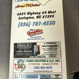 Tarheel Q is a BBQ restaurant located in a rural part of Davidson County, right on highway 64. Just right across the Davie County line (over the river). I have been here multiple times since my first review. The food here is really good. Service is even better. I mainly get the chopped BBQ plate, but the daily specials are very tempting. This is traditional Lexington BBQ. The sauce is already on the pork when you get it. They will give you more sauce on the side. The sides are traditional (fries, slaw, hushpuppies, okra, green beens, etc.). They have more than BBQ on the menu, including daily specials.They do take cash, cards and even Apple Pay. Highly recommend.
