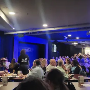 I've been here several times...it's a great venue to see some of my favorite comedians. But be warned... If you go, eat BEFORE you get there!!! The food SUCKS so bad. They are in need of a Menu Revamp so bad!!!! The burger is a frozen meat patty, the beef on the nachos is disgusting, the chicken wings are always tough. For the prices they charge, they can afford to have a REAL kitchen. They must be warming the food cause they can't be cooking back there....you never smell food in there. Last night for the first time, I had the chicken tenders. I'll give them credit for temperature but that's it!!! They served me some school cafeteria chicken patties. It tasted horrible The drinks are BS too, high as #ell and watered down. The safe bet...fries, chips and salsa (don't F with the guac!!), pretzel bites, the churro (I heard), soda, and bottled beer.