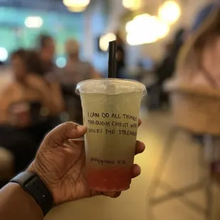I am so glad I found out abt this place! Facebook has learned I love jazz so they are always suggesting jazz events to me. So when the ad popped up for their 1yr anniversary party with live jazz band, I knew it was a must attend. This place is absolutely adorable! There are soooool many drink options hard to choose lol. I met the owner who was so friendly, her daughter sang a few tunes with the band and let me tell you that child has the voice of an angel! I tried two different drinks, a coffee and a lemonade. Both were amazingly good. But my fave part abt this place? They write a different scripture on every customers cup. How inspirational! The whole vibe of the place is out of this world. I can not rave abt them enough and best believe I'll be back! Congrats on the 1yr and I wish you many many many more years of success!
