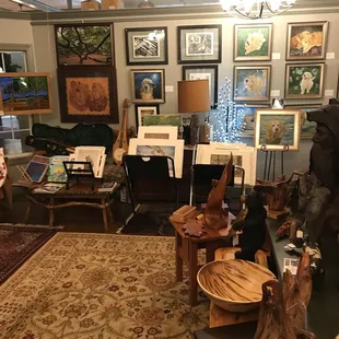 Very nice shop. Met the owner (Ron) and saw some of his beautiful wood carvings. He hand makes guitars too. Incredibly talented and worth a stop. He also has artwork from various other carvers and crafters so take your time to explore.
