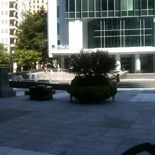 I don't know that I would call this a park. Just around the corner is The Green which I am more comfortable calling a park. This is just a big stone plaza, broken into two levels with a water feature in the middle. To qualify as a park I would demand grass.All the same, it's a nice enough spot to look at. The tables and chairs around the plaza are always occupied, but rarely by me. In the winter the stone is freezing cold and in the summer it bakes you like an oven. Even in the shade, that Charlotte heat is inescapable. The fountain looks cruel and tormenting when you are roasting alive on the sweltering stones.