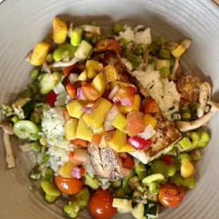 Im writing this from a handful of recent visits as a member in the dining room, not the golf course. Today we got to sample the new lunch menu. In a word, great. I had the gazpacho topped with crepe fraiche (photo). It was chunky and spicy Not hot but just the right amount of zing. I had a second appetizer from the new menu as my main course. Called the Crab Tower. Innovative dish (photos) with lump crabmeat stacked on chopped mango and cucumbers with an avocado sauce drizzled around it. What a cool combination of tastes. Service from Rob was very good as was the view. My only complaint is when it a buffet (e.g., Sunday brunch) and you instead order from the menu the kitchen is very slow. And of course, we will return regularly regardless, due to the "minimum".