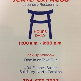 Food - fresh and delicious but I'm missing my vegetables and no low sodium soy sauceService - friendly and quickRestaurant- cleanI was looking for hibachi near my job and I believe I found a good place. I will remember next time to check my food before I leave the restaurant.