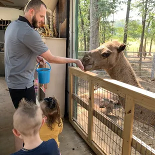 What an awesome petting zoo! I purchased a Groupon for two. I called on our way to make sure we could get a guided tour. We arrived just a few minutes before the next tour started. We were the only ones at our assigned time. Before we got started, we purchased a small bucket of feed for $3. It's $5 for the big bucket.Our guide was friendly and patient. She took her time explaining the different animals and gave us plenty of opportunities to feed the animals, pet the animals and take pictures/videos. Two by Two had a good variety of animals, mostly farm animals. We enjoyed the goats, mini horses, and camels the most. By the end of the tour, my son wanted to go on a "real" horse ride as opposed to the pony ride that the other Groupon deal offered. They charge $15 for 15 minutes, $30 for 30 minutes, and so on. I purchased the $15 deal after our tour guide checked to see if they could accommodate our request at the last minute.The horse riding area is not too far from the petting zoo. There's a separate parking area for it, and we just drove less than a mile. My son's guide was already waiting when we got to the stables. She, too was friendly and patient. She was also very knowledgeable of horses. The staff was able to choose the right horse for my 10-year old son. My son loved every minute of his short ride! It was his very first time on a horse and a very memorable one at that. Although far from us, Two by Two was worth the drive! We thoroughly enjoyed our visit. We definitely recommend.