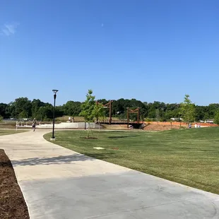 I finally got to visit Unity Park today and did not realize that it was located adjacent to The Commons which I first visited years ago from a Yelp event. It's also runs parallel to the Swamp Rabbit Trail that my family and I would ride our bikes from downtown Greenville to Furman University on the weekends when the kiddos were young (many many many trips around the sun). So it's close to AJ Whittenberg Elementary School and the Kroc Center. It is truly an open outdoor space. Perfect for young children to play, older children, teens, adults to go bicycling or walking which I saw plenty. Playground has different levels and elevations. There are beautiful slides that seem to be part of the landscape, and water fountains that spring upward to the delight of children and their parents, especially on warm/hot days. There are also restrooms which I did not check out but located near the playground, and walkway/sidewalk along the entire perimeter to even the brightly colored Unity sign. There are also ample benches.What also impressed me is the well thought-out location. Being right adjacent to the Swamp Rabbit Trail and the AJ Whittenberg Elementary School, Kroc Center and The Commons. For those that aren't familiar with The Commons, it is one large location space with multiple food/beverage small businesses do what an ideal place to enjoy beautiful outdoor and food and/or drinks. The Prisma Welcome Center anchors closest to the Unity Park and also has restrooms. There are beautiful paintings inside and the large conference room seemed to have completed a large meeting before I arrived. A staff told me there will be more changes to the interior that may include a gift shop in the future. There are businesses in that area too including Carolina Triathlon so those training on running or cycling can use the trail to get mileage in too. And I'm sure nearby Kroc Center pool have swimmers! I've always wondered how the small businesses at The Commons attracted enough people and the pandemic didn't help HOWEVER with this Unity Park, what an ideal location so hopefully this will help the business owners. I didn't check but someone with an ice cream/gelato or smoothie would do well here for those wanting a cool sweet treat. There were adult beverage places and coffee places here. Both indoor and outdoor seating. Outdoor welcomes dogs and their lovers/owners. There are ample parking space.You can even walk across a foot bridge to get the the other businesses like where Soul Yoga is located. They did a fabulous job combining all of these so you can park once and walk/ride. This explains why it's #YeahThatGreenville