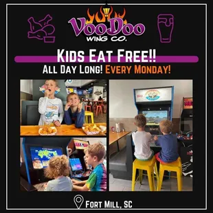 When Voodoo first opened, we went and thought it was okay. We also had a screaming toddler with us so we couldn't enjoy the food and it was crowded. Fast forward and now we've been several times mainly because the food is good and service is fast. I've had several things here, the boneless wings, traditional wings, tots and fries. And the sauces are top notch. I haven't had one I didn't like yet. The jerk sauce is probably my favorite. And the boneless wings are what I usually order. They are huge chunks of white meat in a light, but crunchy breading. Also the breading doesn't contain milk, a victory for my lactose intolerance, so I'm so glad I'm able to eat it and glad staff checked with the cook for me. On my latest trip I had a salad -hello new year- it was still delicious with four boneless wings and blue cheese dressing was so good.Staff is always friendly and able to explain sauces. It's always clean when we go. The environment is very casual. There are tvs everywhere for the games and they have free arcade games to play which my daughter enjoys.Speaking of kids, they have some great weekly specials. On Mondays kids eat free. Lately we've been going for their lunch special for like $10. You can get a sandwich, wings or salad with tots or fries and a drink. There's other specials, but those are the ones we use.