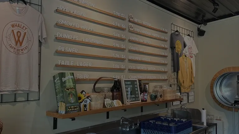 Whaley is one of our favorite breweries. A lot of their beers are made from ingredients from their farm. In addition to great ambiance and friendly staff, they feature local produce to take away and a fantastic pizza truck.Good bar to sit at and tables inside and out for larger groups / kids. Only about 25 minutes east of Asheville in Old Fort and right off the 40 so very convenient to stop into while road tripping. We also stop here when passing by because the beers are unique and the produce great for making a fresh meal when you arrive home or at your destination.
