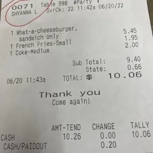 I have been eating at other locations for over twenty years and don't know what has changed with the meat quality,but it reminded me of a burger from a school cafeteria. It had no flavor and tasted like it was steamed.The location is supper clean and the staff were great.