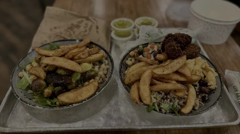 I really enjoy YAFO Kitchen's illustrious heritage and their middle eastern cuisine. I wanted to sample everything on the menu except the meats, so I opted for the Build Your Own (BYO) Bowl option. Kalamata olives, chickpeas, roasted red peppers, tzatziki, Tunisian hummus, quinoa salad with lemon and cranberries, and cauliflower rice were my cold selections. Macaroni and cheese, potatoes with garlic and oregano, and falafel were my hot selections. I paired it with granch, which is Greek yogurt, and Greek vinaigrette, which is a lemon herb dressing. There was a delightful, new flavor to every bite. According to my kid, the Brussels sprouts were just right. The costs were fair, and the extras didn't break the bank. The parking is terrifying, but the lines for orders are usually short. The meal and service were both excellent. In future visits to Charlotte, FAYO will be my first choice.