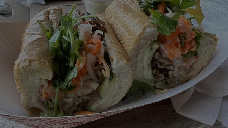 Really good food truck that did a pop up in my neighborhood! I was so excited to find out they were coming because I've heard about how good the Banh mi sandwiches are here! I loved that I didn't have to stand in a long line and wait for hours. I put my order in online and they texted me when it was ready! I ordered the lemongrass pork Banh mi and it was really good! I loved all of the different flavors and textures. It had really good and juicy meat, tangy pickled veggies, and fresh cilantro and jalapeños on top. It also had a great garlic mayo that added a creamy texture to the sandwich. The bread was crunchy and fresh! I also tried the lemongrass chicken and lemongrass beef Banh mi sandwiches. They were also very good! I couldn't decide which one I liked most! My sister got the fried rice bowl with sautéed veggies. It was pretty tasty too but I prefer the sandwich. The only reason I'm giving it 4 stars is because it's a little pricey. The Banh mi was $9 and didn't really fill me up. I wish it came with a side or some more meat in it. Overall, the food was very good and flavorful! I would love to have it again!