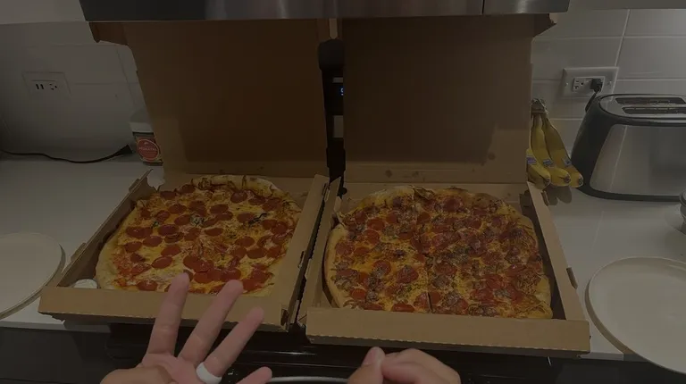 two pizzas in boxes