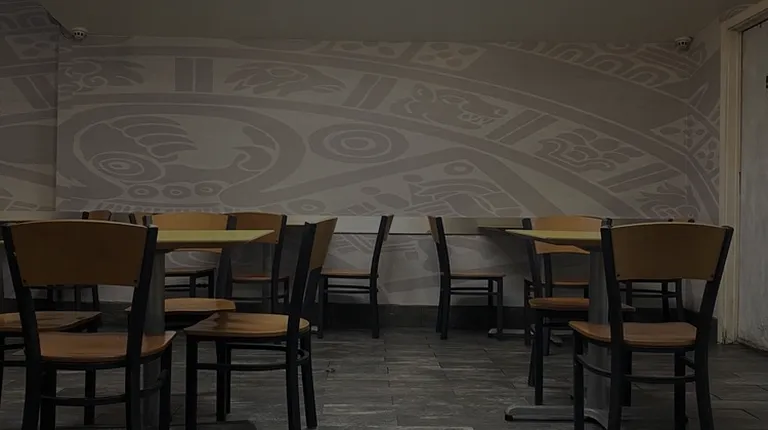 a sun face on the wall of a restaurant