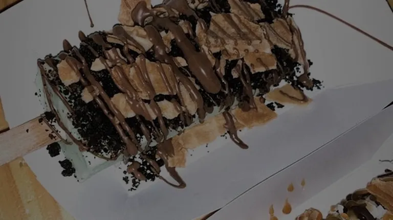 Vanilla Gelato, Milk Chocolate, White Chocolate drizzle and Cinnamon Toast Crunch.