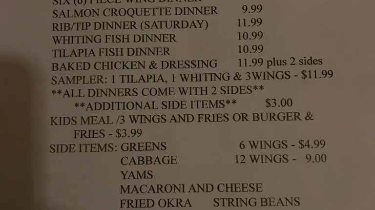 I can't believe I've never reviewed All in One/ Emma's. I live around the corner from this spot. I come from a family of southern women that cook well. I've has so called soul food many places across the city. Some places are hit and miss, some I just don't enjoy and others cut corners for example serving canned greens as opposed to fresh. You can serve canned in some cases but you need to add flavor. Add some love. Emma's has never ever let me down. Yesterday I had greens and meatloaf. The greens were sooo good. The meatloaf was good I won't say great but I selected the wrong gravy. It was one item I had never had before. The fried chicken is like at home in your kitchen. The fish is seasoned and fried well. I have never had the ribs tips, I've tried a couple times but they were sold out which tells me they are good. Give this place a try. You will not be disappointed.