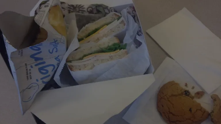 I've had Aynie's box lunches 3 times now and they are alway phenomenal! The bread is always ridiculously fresh. The turkey is the cut and the cheddar is mildly sharp. Add the fresh lettuce and you have a delicious sandwich! I've also seen mozzarella balsamic tomato sandwiches, roast beef, Italian, and ham sandwiches offered. It also comes with a packet of mustard, a fresh baked cookie, and a small bag of bomb kettle chips! Anytime a school function is catered I hope and pray for aynies. They deserve the kudos.