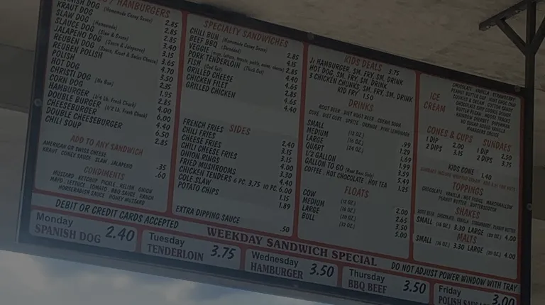 This review is long overdue...No trip to my hometown is complete without a visit to get a Spanish dog. The "place" has long since changed and I must admit I miss the old place down the road that no longer exists and hasn't for years...lots of memories there. Not to mention my parents and grandparents frequented that old Root Beer Stand. I do like the idea that when this "new" place was built years ago they added inside dining. Even the folks who grumbled and/or cried years ago when the old place was torn down liked the idea of indoor dining! Besides, depending on the mood, it is nice to eat inside, and the old place used to close down in the cold months. I've watched the prices go up over the years, but I keep coming. The taste has changed over the years as well, but I still keep coming. Well, there was a year in there when I stopped because of the recipe changing too much and that period when the hotdogs themselves were different. I do miss the old recipe, and they are using it, but I think the people who make it have a lot to do with it and employees come and go, so that special something is lost. The root beer is always super cold and delicious and mushrooms are normally pretty good. They have daily specials and I can honestly say that I've had everything on the menu, but the Spanish dog is the "go-to" item in my opinion. They still come to your car to take your order and bring your food to you if you pull up under the overhang. But it's not like the old days when you automatically got a tray and had to start up your car for them to come get your tray (trash, mugs, etc.)...I miss that. Now you take care of the trash, etc. and you don't get glass mugs unless you sit inside. Root beer tastes better in glass mugs...jus' sayin'. Although it's not as unique as it used to be, it's still a unique place. Be advised, when you stay in your car to order, they will take your card to run it inside. Be aware of this in advance, but it's safe. Aside from the area to place your order from your car and eat, there is plenty of other parking if you wish to eat inside. Just be sure to not park in the area where folks wish to pull up and eat (the overhang area)...make sense? And if you eat inside, take time to enjoy the décor. The black & white checkered floor sets the stage for the 1950s motif complete with a jukebox and cool bar perfect for enjoying a root beer float. There are restrooms as well.The staff is staff. Prices are a tad high, but it's worth it. Moreover, they stay open year-round. No matter how you slice it...a bite of a Spanish dog brings back memories for me...my childhood, my wild teenage days, friends, fond memories of family, and just some really good thoughts and vibes. And that is what keeps me coming back...Please note: The B-K in Piqua and the one in Troy are no longer affiliated from what I understand. So, please do not confuse this one with the one in Piqua. The food tastes the same, but different (for lack of a better term), and nearly the same menus. Try both and decide which one you like more! But remember, the one in Piqua is open seasonally.