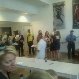 This might be the best way to get your man to go see the ballet with you, serve Pizza and Beer and make it FREE!! About a week before the Cincinnati Ballet opens their latest performance, currently a Midsummer Nights Dream, they host a Ballet and Beer event. You are able to go into their practice studio and watch the dancers rehearse. It is awesome to sit so close to the stars and get a preview of what goes on behind the scenes. It is a free event, but space is limited, so you have to RSVP quickly or win the tickets like I did! (via Yelp! again)The director welcomes you and explains a bit about what they are performing for you and a little background from the scene. It is so interesting and such a different take on the ballet. No fancy costumes or sets, no live orchestra, just the dancers doing what they do best, dancing their hearts and legs off! It is very raw and you really get a sense of how hard they work. You are up close enough to see their sweat and hear them breathing. I think they all look amazing, but you can see the director and choreographers critiquing and taking notes for the actual performance. Okay, so the rehearsal part takes about 30 minutes to an hour, not too long, not too short. Then you can head on out to the lobby to mingle and socialize all while munching on FREE Pizza and guzzling FREE Beer! LaRosa's provides the pizza, the Beer is donated by Arnold's Bar and Grill and Ludlow Wines graciously donates wine. They also have soda and water if you are not drinking. We definitely got our mingle on and had a blast chatting with everyone we met!After the dancers finish their practice, they head on out to partake of the pizza and beer, which they totally earned! Great time to chat with the dancers and/or staff of the Ballet. We met the PR lady for the Ballet who went into glorious detail about the basement vault filled with years and years of costumes!! She even mentioned possibly opening it up for a tour, pretty please count me in for that!What a fun way to experience the ballet! Behind the scenes and have I mentioned the FREE pizza and Beer yet? If you are a ballet lover and your dude not so much, try a Ballet and Beer event. A WIN/WIN for both of you and a perfect combination for Date Night!
