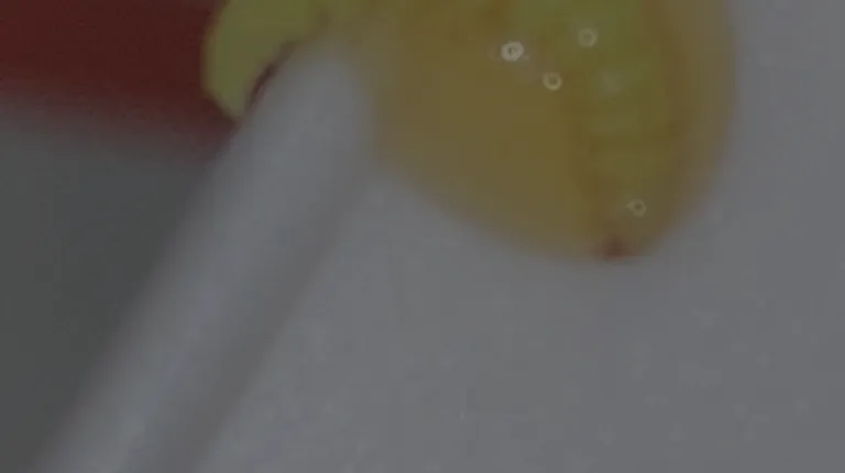 a yellow worm on a white plate