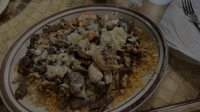 $17.99Your choice of a juicy steak with shrimp cooked onions and mushrooms, topped with cheese, served with rice, refried beans, guacamole salad, and three flour tortillas.