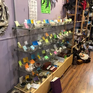 This store does Halloween right! Whole room of light up/moving Halloween displays which was fun to check out along with a Halloween decor sprinkled throughout the store. Wide variety of spices, books, crystals and and of course 2 store cats to properly great you! The store was a lot bigger than I originally thought and was surprised by the variety of unique products you can't really find in many other stores. Looks like they also offer spice classes and massage therapy there as well.