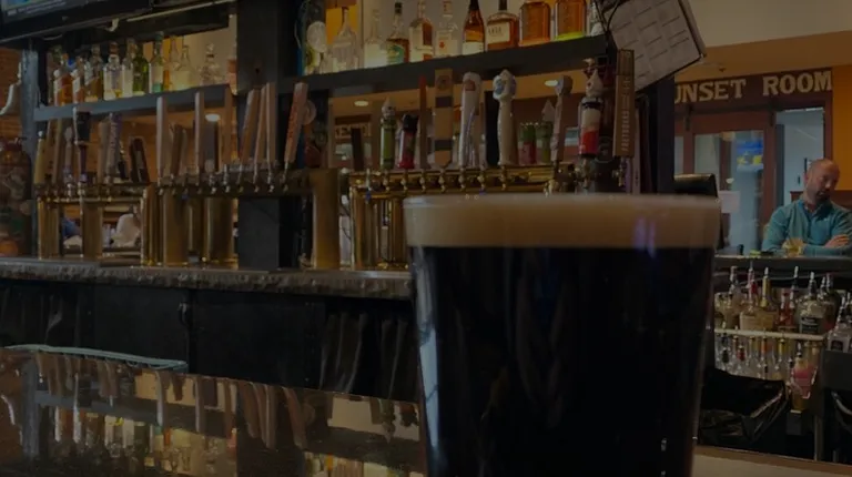 a bar with a large screen tv
