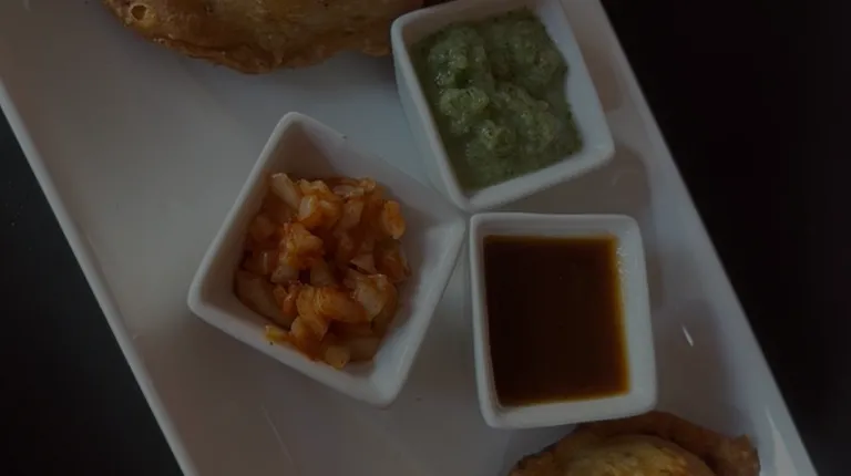 Tomatoes and Chili, Mint Chutneys, Aloo Tikki and pakora