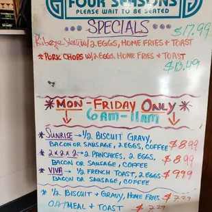 Looking for someplace new for lunch, we found Four Seasons. Typical family kind of place. Of note: we were being led to a table on the other side of the restaurant. The person kindly changed course to the closest table because he noticed my friend has mobility issues.Our waitress was very friendly and offered great suggestions The menu was extensive! Greek, Italian, Mexican, American. Servings were huge! Prices were reasonable. We will be back!