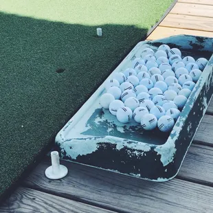 Large basket of 100 balls $10. Small $8.