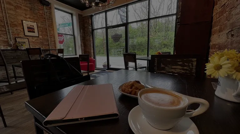 Very cool coffee shop in the East End. Stopped by on a Saturday morning and was impressed by the vibes. The decor was really cool. Love all the exposed brick. Staff was friendly and the drinks were made quickly. We got an iced chai and an iced vanilla latte. They were delicious. The ham and Swiss croissant was warm and flaky. There's parking behind the building.