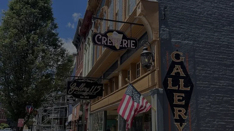 We were so surprised by the charm and variety in this space. Gallery 115 hosts an amazing range of beautiful artwork and merchandise, most of which features paintings and frescos of Madison and the Ohio River. It also has a fantastic cafe with a wide range of offerings for any time of day.The coffee and drinks are fantastic, with a wide range of styles of coffee as well as seasonal drinks like hot chocolate and cider. There's also a number of delicious baked goods, like the old Hoosier favorite, sugar cream pie. And you've got savory options -- we went with the classic grilled cheese and tomato soup, which always hits the spot on a winter day.The place is an excellent gathering spot for book clubs, meetups, or just a weekday lunch, and the staff is attentive and friendly, genuinely excited about all of the fares and wares they offer. If nothing else, stop in and check out the art and pick up a pack of greeting cards printed with the Broadway Fountain. You won't be disappointed.
