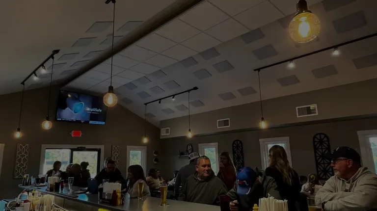 This is a "hidden gem". It's a little far removed from the main drag. But it is so calming when you get there. It is on a golf course. The inside is limited seating. There is an outside patio with more seating. With winter coming on I asked if they were going to expand. The girl working behind the bar seem to think that they were going to enclose the area where the patio is to make for more seating. I ordered a hamburger. It was good. The french fries were awesome. Yes, I love potatoes. The person I was with had chicken chunks. She said they were pretty good. It looked like the woodfired pizzas coming out from the kitchen were awesome. I did see someone with a wrap and it looked very good also. We are looking forward to going back here and trying some different things on the menu. They do have a hostess stand at the front to keep up with the foot traffic. There was a wait list.