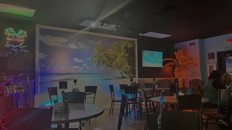 I had zero expectations and was totally blown away by how good the food was!! I had one arepa and part of an empanada and loved them both. I love that you can customize the fillings inside the arepa and the variety of fillings. They ran out of steak "the order before ours" so we tried to barbacoa. I was expecting tough and overseasoned meat, but it was tender and perfect. The masa in the arepa had such a nice texture and the whole thing was so edible. So I'm glad they ran out of steak because I normally wouldn't have tried the barbacoa.I really liked the chicken empanada as well, it had yuca inside it, had a great texture and the chicken was really tasty. I didn't like the creamy cilantro sauce much but the dark green sauce from the salsa bar in the back with the mannequin (?) was amazing and I slathered that on everything.The vibe here is modern tiki, with more emphasis on modern than tiki which is cute but a bit soulless. There was a cool drum setup and guitar on the corner by the bathrooms (very clean and nice btw) so maybe they have live music here sometimes? It'd be super fun to come see that.The one confusing thing here is the service, like you order up at the counter... we ordered our drinks and then sat down to look at the menu and went back to order, so the girl at the counter had to add our drinks. It was weird and very crowded by the ordering area because the menu is slightly complicated or has a lot of customizations or something. So it was unclear how much service we would get during the meal and therefore unclear how much was appropriate for a tip...I felt bad for the staff because there's only one place for them to bring food out and it's through the gaggle of people ordering food :( It seems difficult for them and it's awkward for customers too.Also unfortunately it took over 40 minutes for our food to come out. It was really popular on a Saturday night, eventually the manager or owner came out and started making rounds and explained that they were short staffed. I don't normally time how long it takes for the food to come out but it was really long. Anyway, the food is banging, and I believe in their ability to figure it all out!! We can't wait to be back!