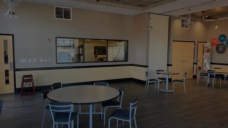 a table and chairs in a restaurant