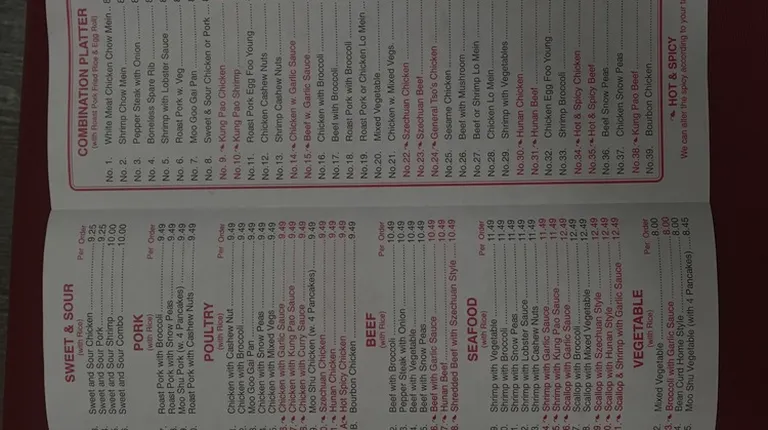 This is one of the few places that deliver where we live. I really like tbeir food. Sometimes I have gotten really fatty bomeless ribs, but other times they are really good. Singapore mai fun is very spicy. The crab Rangoon actually has crab meat in it (probably imitation, but most places just put cream cheese) and is absolutely fantastic. Hot and sour soup is very good. They do a great job amd portions are generous. I've never had a bad meal. Their fried rice is much better than most take out places, but their egg rolls are only mediocre.