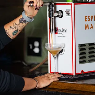 a person holding a glass of cocktail