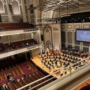 Nice environment. Beautiful building. Went to see pops. Sat in the back but could see. Pops is very expensive. Crowd was mostly older including me and my wife 50+. Lot of empty seats. Soft drinks and beer, wine, alcohol is expensive. Only saw chocolate for intermission snack.