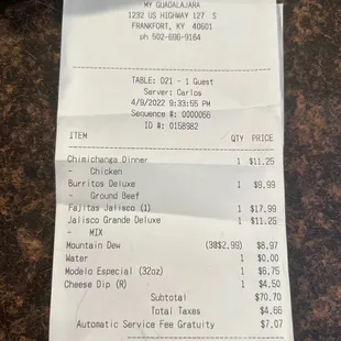 Well, the wife and I have been trying this place again. We stopped going several years ago because they changed the credit card receipt. But we decided to give it another chance. After several visits everything was fine, the food was good and the service was polite. But tonight, we found out the nasty way that they recycle their chips and salsa. There is nothing like digging into the salsa and finding someone else's soggy chip in the bottom of the dish. That is just flat-out gross and nasty. Strike two...you're out!! I will not be visiting this establishment again. BYE!https://www.tripadvisor.com/ShowUserReviews-g39426-d3251963-r875776960-My_Guadalajara-Frankfort_Kentucky.html#
