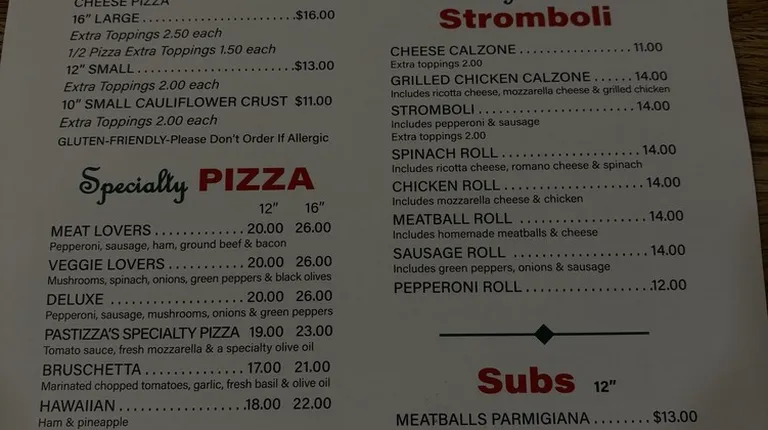 Everything we have had is so good. The pastas, the pizzas, and the desserts. We are usually getting multiple things with a family of 4 and after tip we're under $50. The pasta dishes we have gotten come with a salad and garlic knots. They also have a very friendly staff, and the owners are very genuine kind guys.