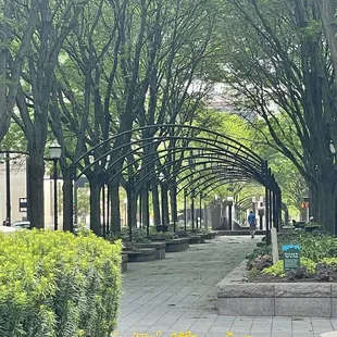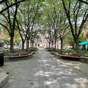 This is a small park in the middle of downtown, that is great for pictures. The arches with the trees look absolutely stunning if you get them going down the length of the park, and the seasons really show up great here with the trees...Come in the Fall for extra bright yellow trees. -1 Star because there's not a whole lot of green space and cars drive pretty fast around this park, so I wouldn't come here with my dog or with kids and let them run around.Close to the Library and good for reading a book or eating lunch on one of the many benches.