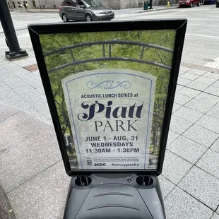 This park is a pocket strip park located in downtown Cincinnati. This thin park spans two blocks. It is primarily a place to sit and take a load off, with tons of shaded seating. It has been around since 1817 and is the city's oldest park. It has a statue of President James A. Garfield on one end, and a statue of President William Henry Harrison on the other, both of whom were from Ohio. There is a paved walkway that runs down the park and there are benches on the perimeter of the walkway facing each other. You will find decorative arches placed along the path and some decent fountains.The park is named after brothers John and Benjamin Pratt after they donated the acre of land to the city under condition it be used "for a market space." That land is now Piatt Park.The park has free wifi and is the site of special events. They were having a food give away while I was there. They also host a weekly acoustic lunch series in the summer. There is metered street parking and commercial lots within reasonable walking distance.Sadly the park is over run by the city's homeless and is beginning to look trashed and run down. The park does not have any water fountains, rest room facilities or much green space. It is basically a place to sit or maybe run through. I do like the park's historical aspect, but that can only take it so far.If you are looking for a park to hang out, I would probably pass them up. It has right intentions, but misses the mark.Fun Facts: The statue of President William Henry Harrison is the city's only equestrian statue and both presidents served the two shortest terms in office as president: Harrison served 31 days and Garfield 199 days.
