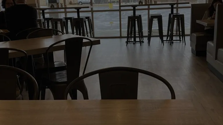 the entrance to a fast food restaurant