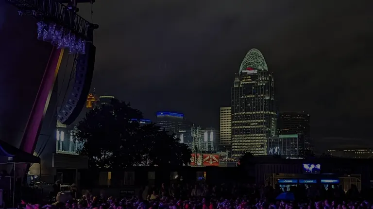 This place is almost--almost--a carbon copy of the Columbus venue, except that it's better. Here's the edge:- Parking under the venue. It's a little annoying to get in and out, but the fact that you can 1) hang out in your car instead of waiting in a huge line to get in and then 2) take one of the stairwells at the back of the hill straight down to your parking spot is great. Worth $20 in my opinion. - Two entrances, which is one more than C-bus. - Two counters serving food. Unclear if Mikey's Late Night Slice is actually made on premises, but you can get it at the bars on either side of the stage. This prevents the Pizza Pile-Up that tends to happen in Columbus as people come in and head straight for the food just inside. - Many, many bars. In addition to the big two with pizza, I counted at least 3 more (one is in the VIP area). - A little more lax on the rules (maybe?). My review of the Columbus venue recounts the time I arrogantly thought my small crossbody purse would be allowed inside. At this venue, I saw plenty of women (and some men) with actual bags that size, not just the tiny clutches that are supposed to be allowed. Heck, I saw someone with an honest-to-goodness umbrella, which is definitely not allowed per the official rules on the website. I'm not saying you should purposely flaunt the rules here, and you still have to get your whole self through a metal detector, but you might have a tiny bit more wiggle room across the river here. - Finally, THE VIEW! Enjoy a lovely Queen City backdrop as you listen to your band of choice into the night.
